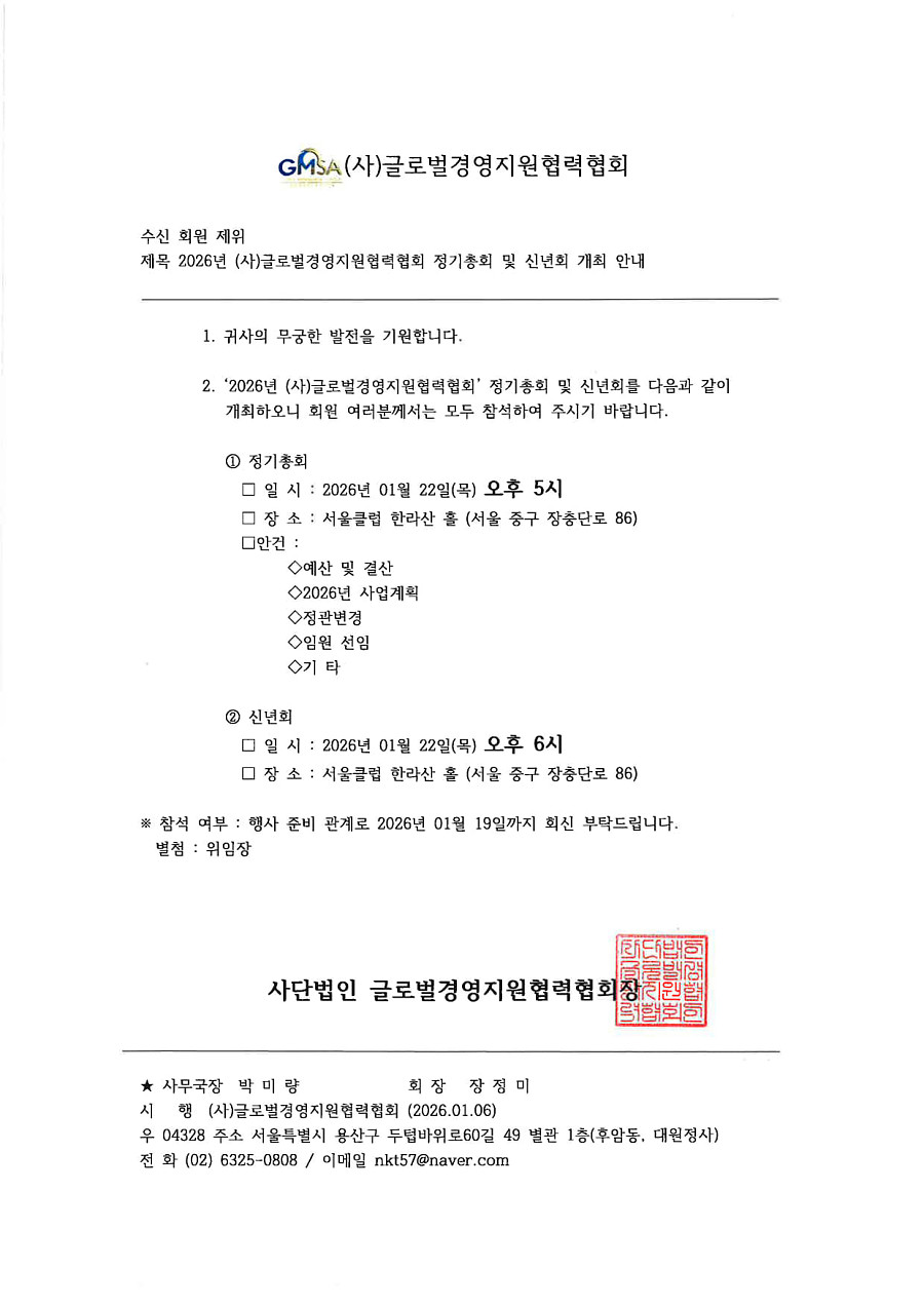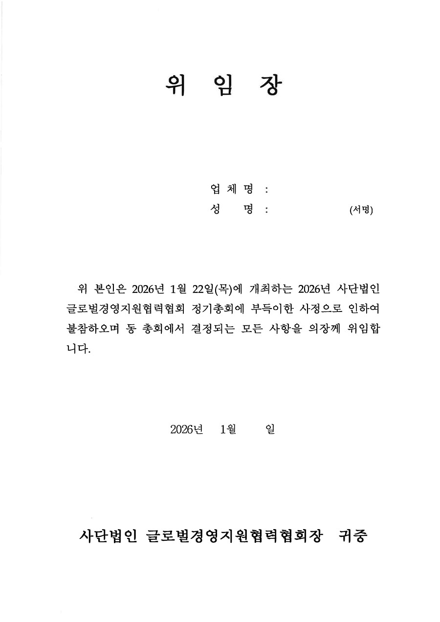2026년 글로벌경영지원 협력협회 총회 개최 안내