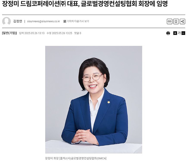 장정미 드림코퍼레이션㈜대표,글로벌경영컨설팅협회 회장임명