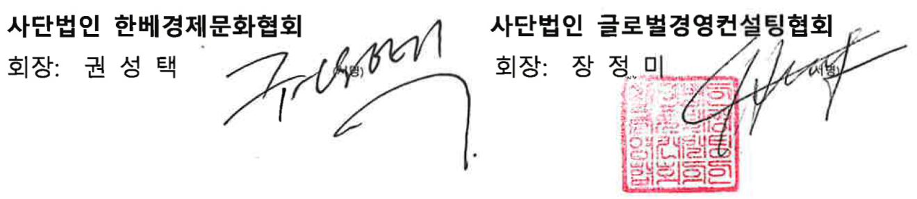 사단법인 한베경제문화협회(KOVECA)(서울시 중구 필동로 37 평강빌딩 303호)와 사단법인 글로벌경영컨설팅협회(GMCA) (서울시 용산구 두텁바위로 60길 49)