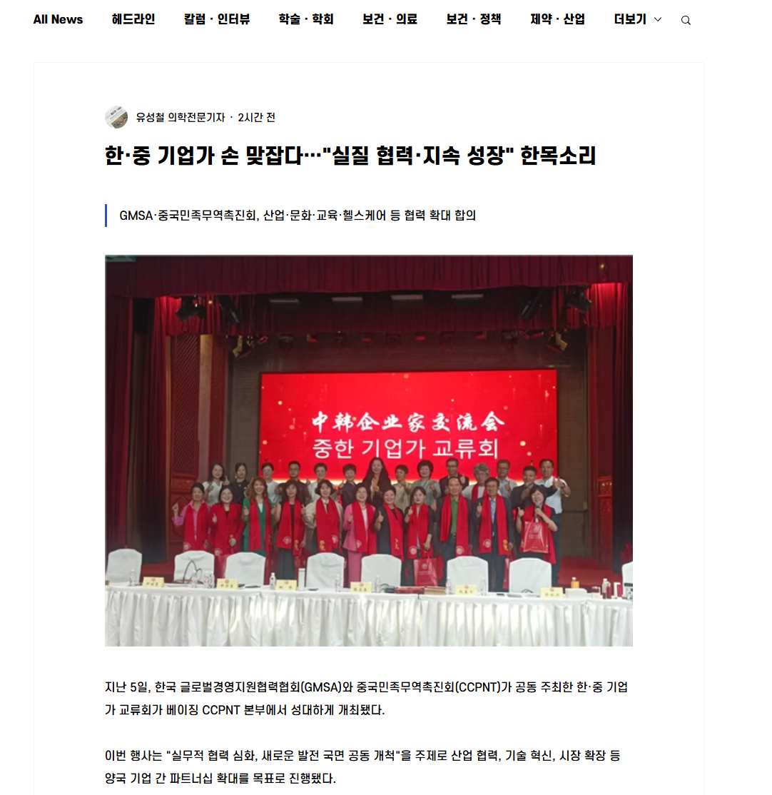 GMSA 장정미 회장은 CCPNT의 환대에 감사의 뜻을 전하며, "한국 기업들은 건강식품, 뷰티 기술, 스마트 디바이스