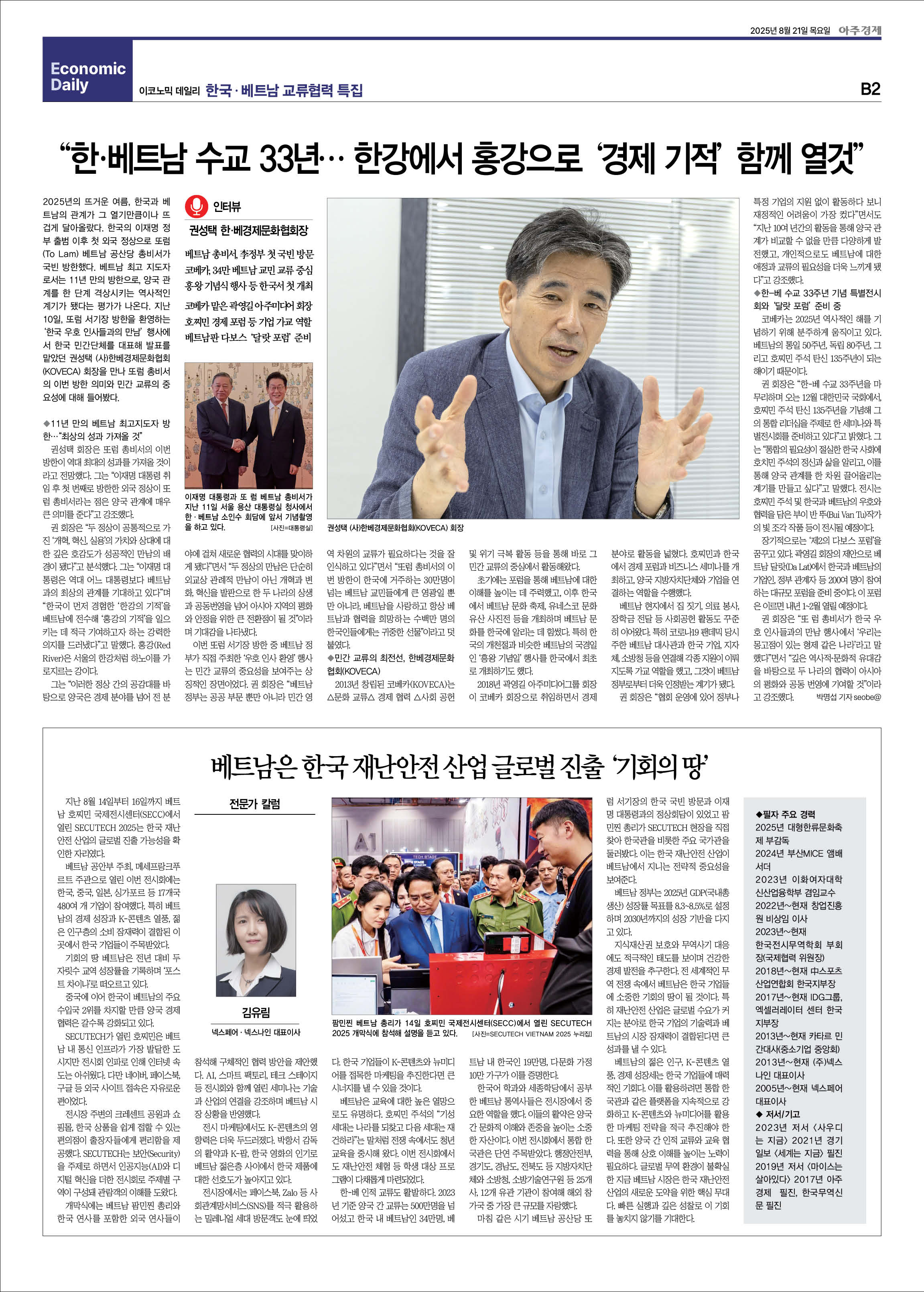 한국재난총연합회(KOVECA) 회장이자 GMSA 자문위원인 권성택 회장이 최근 언론 인터뷰를 통해 한·베트남 수교 33주년을 맞아 양국의