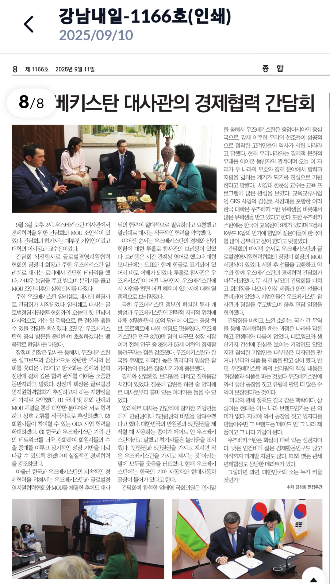 「우즈베키스탄 대사관의 경제협력 간담회」
