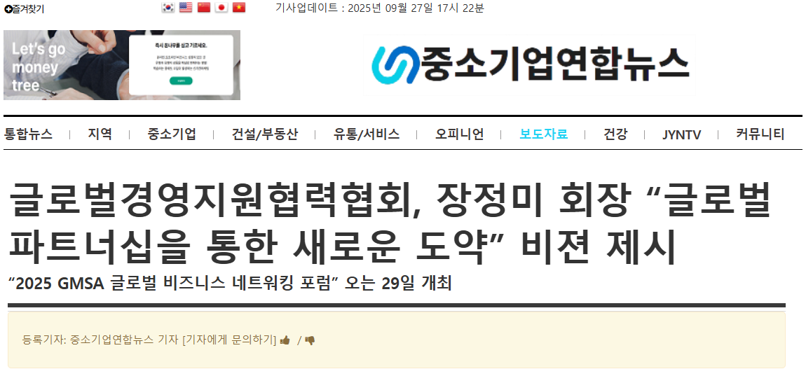 (장정미 회장)가 주최하는 2025 GMSA 글로벌 비즈니스 네트워킹 포럼이 개최된다.