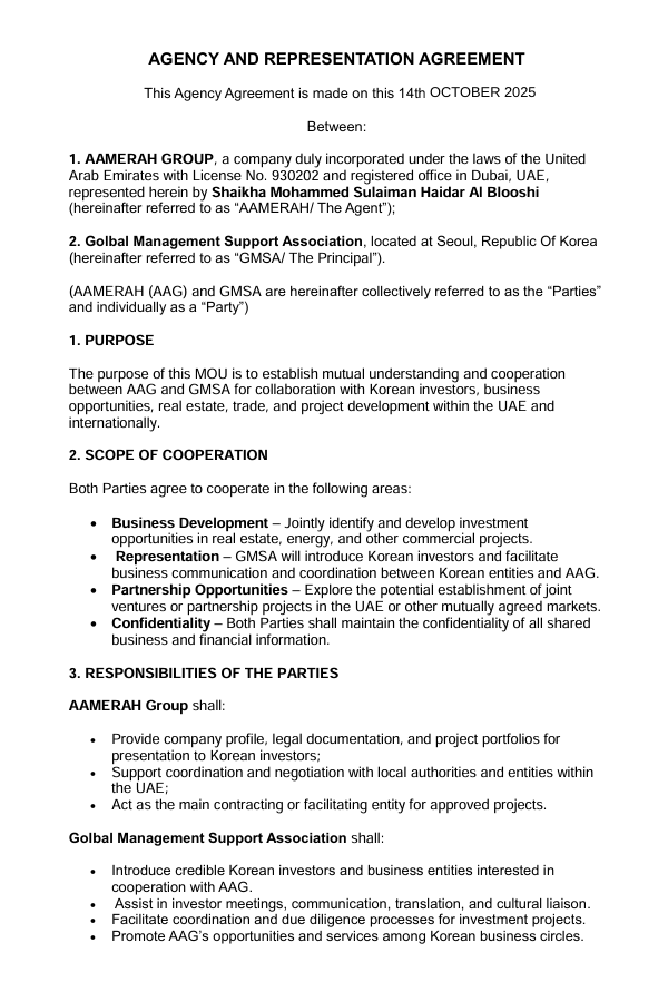 AGENCY AND REPRESENTATION AGREEMENT