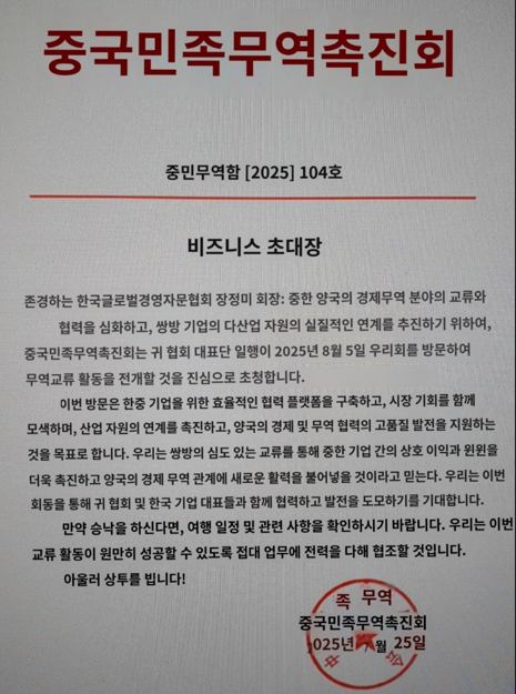 중국민족무역촉진회 비즈니스 초대장
