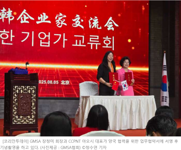 [베이징=코리안투데이] 글로벌경영지원협력협회(GMSA, 회장 장정미)와 중국 민족무역촉진회(CCPNT)가 지난 8월 5일 베이징 양광예당에서