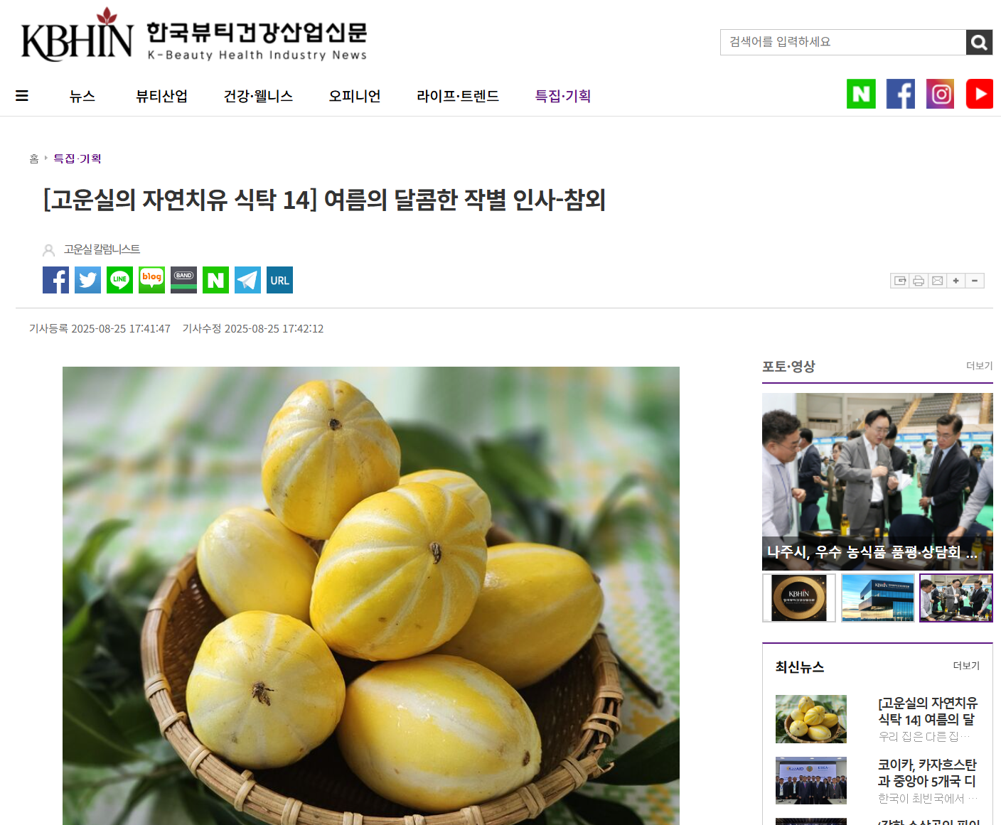 현대 영양학적으로도 참외는 여름 건강에 꼭 맞는 과일이다. 90% 이상이 수분으로 이루어져 갈증을 해소하고, 칼륨이 풍부해 몸의 부종을 완화한다.