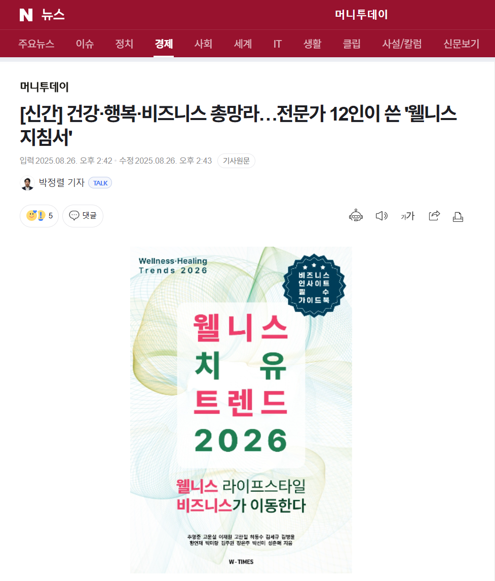 책의 편저자인 추영준 웰니스치유포럼 대표는 "이 책은 단순한 건강관리가 아닌 삶의 질을 향상하고 지속할 수 있는 웰니스 실천을 위한 핵심 트렌드와 비즈니스